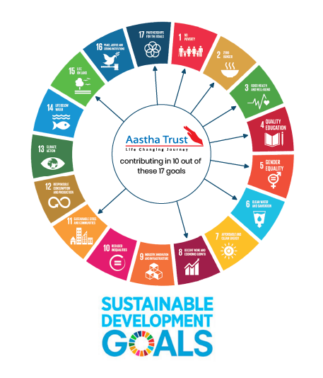 Aastha is a non-profitable organization, with a mission to elevate the living conditions of the vulnerable people in our society. Aastha is supporting the government in achieving the sustainable development goals (SDGs) by directly contributing in 10 out of 17 goals.